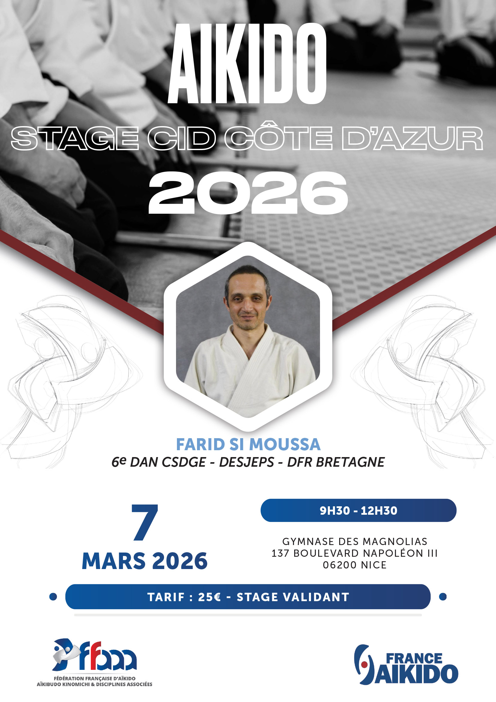 | 28 SEPT | STAGE CID CÔTE D’AZUR | 9H30-12H30 | NICE DOJO PARC IMPERIAL | Micheline TISSIER |
